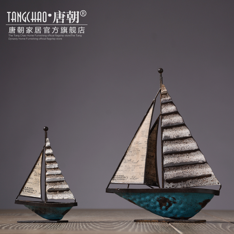 美式乡村铁艺帆船摆件设 客厅酒...