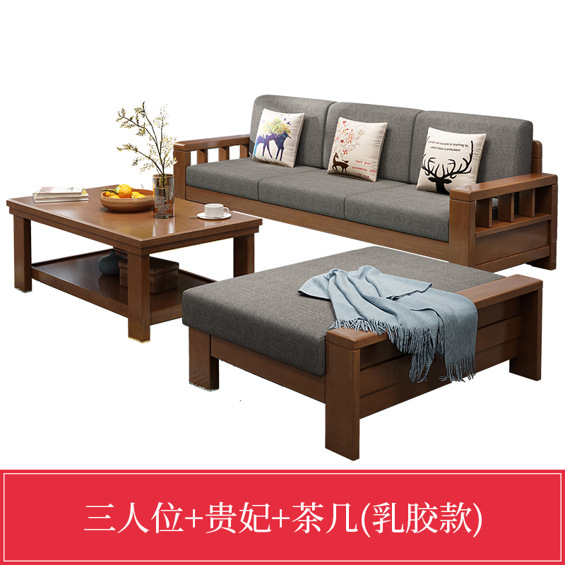 实木沙发组合新中式小户型布艺沙...