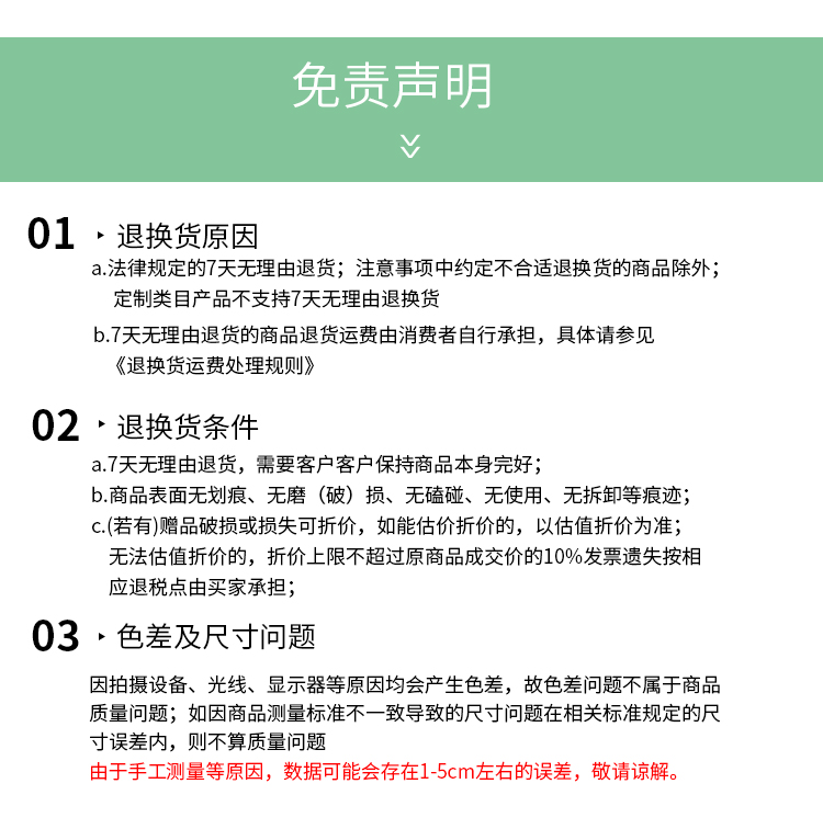换货处理周期:自接收到问题商品之日起 15 日之内为您处理完成;